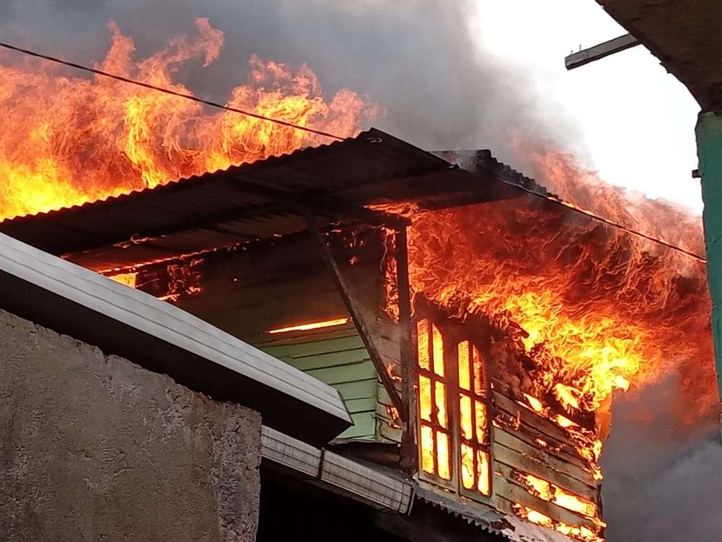 PADANGSIDIMPUAN-Rumah milik warga di Kelurahan Aek Tampang, Lingkungan 5, Kecamatan Padangsidimpuan Selatan, Kota Padangsidimpuan, Sumatera Utara (Sumut) terbakar.