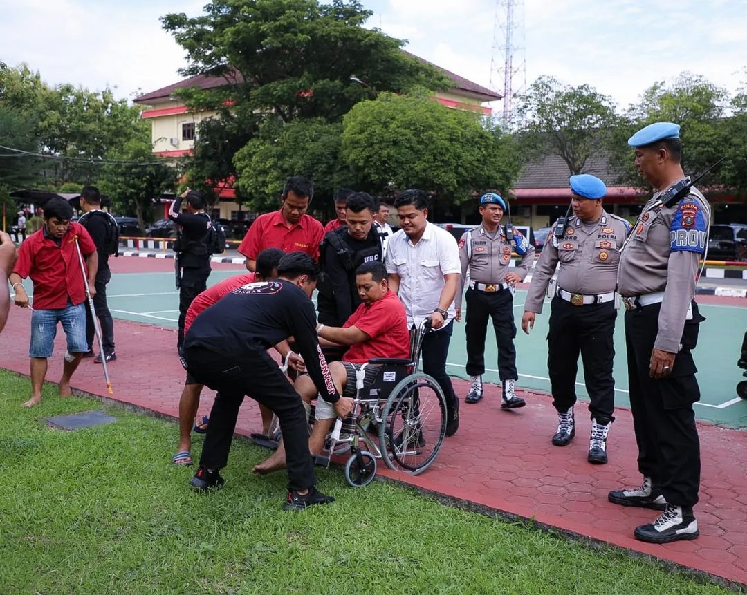 Berdasarkan hasil penyelidikan, para pelaku diamankan di dua lokasi berbeda yakni Batubara dan Tapanuli Tengah. Kini, para pelaku mengenakan pakaian berwarna merah dan salah satu diantaranya duduk di kursi roda.