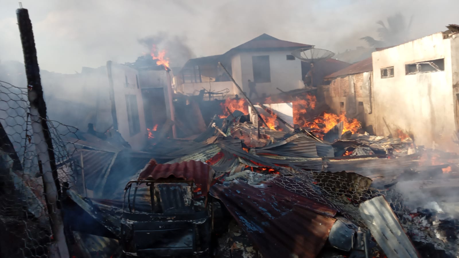 Hingga saat ini, warga bersama petugas kebakaran masih berjibaku memadamkan api. Menurut pantuan wartawan, bangunan rumah yang terbuat dari papan menyebabkan api cepat menjalar ke rumah warga yang lain.