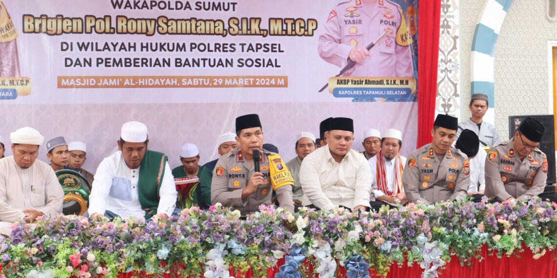 Safari Ramadhan Waka Polda Sumut berlangsung di Masjid Jami’ Al Hidayah, Desa Parsalakan, Kecamatan Angkola Barat, Kabupaten Tapsel.
