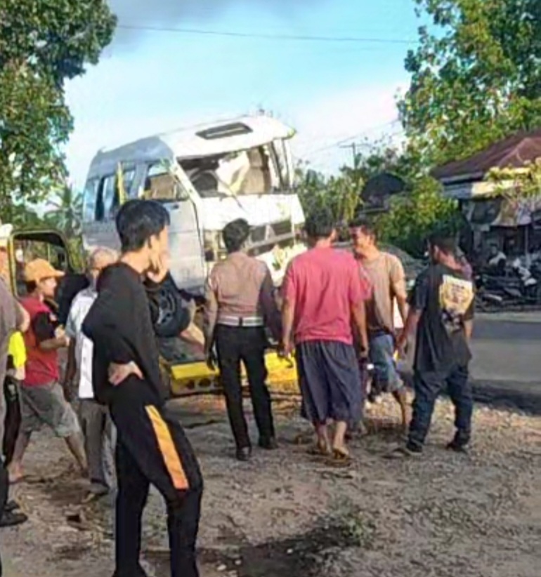 mini bus L300 jurusan Kota Sibolga-Dalu-Dalu alami kecelakaan di Jalan Lintas Sumatera, tepatnya di Palopat Maria, Kota Padangsidimpuan.