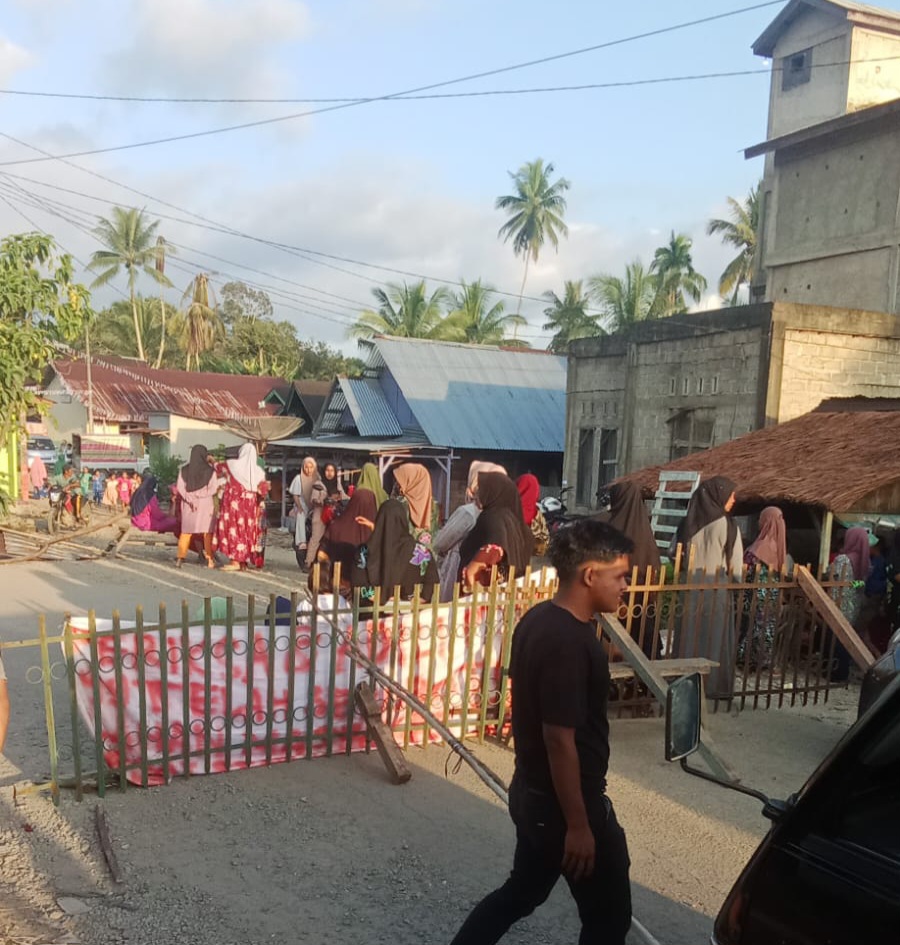 MANDAILING NATAL-Warga di Kelurahan Tapus, Kecamatan Lingga Bayu, Kabupaten Mandailing Natal (Madina) kembali menutup jalan provinsi yang menghubungkan antara Panyabungan dan Natal.