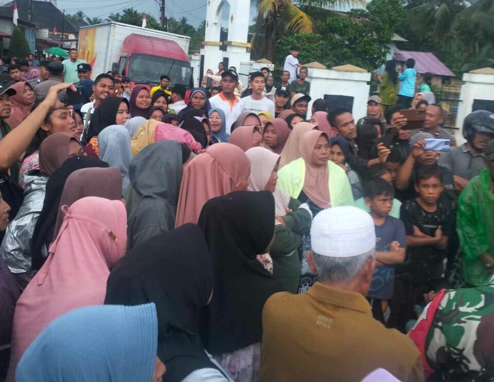 Ditengah guyuran hujan para ibu-ibu ini membuat blokade jalan, sehingga mengakibatkan terhambatnya lalu lintas di jalan Simpang Gambir – Natal.