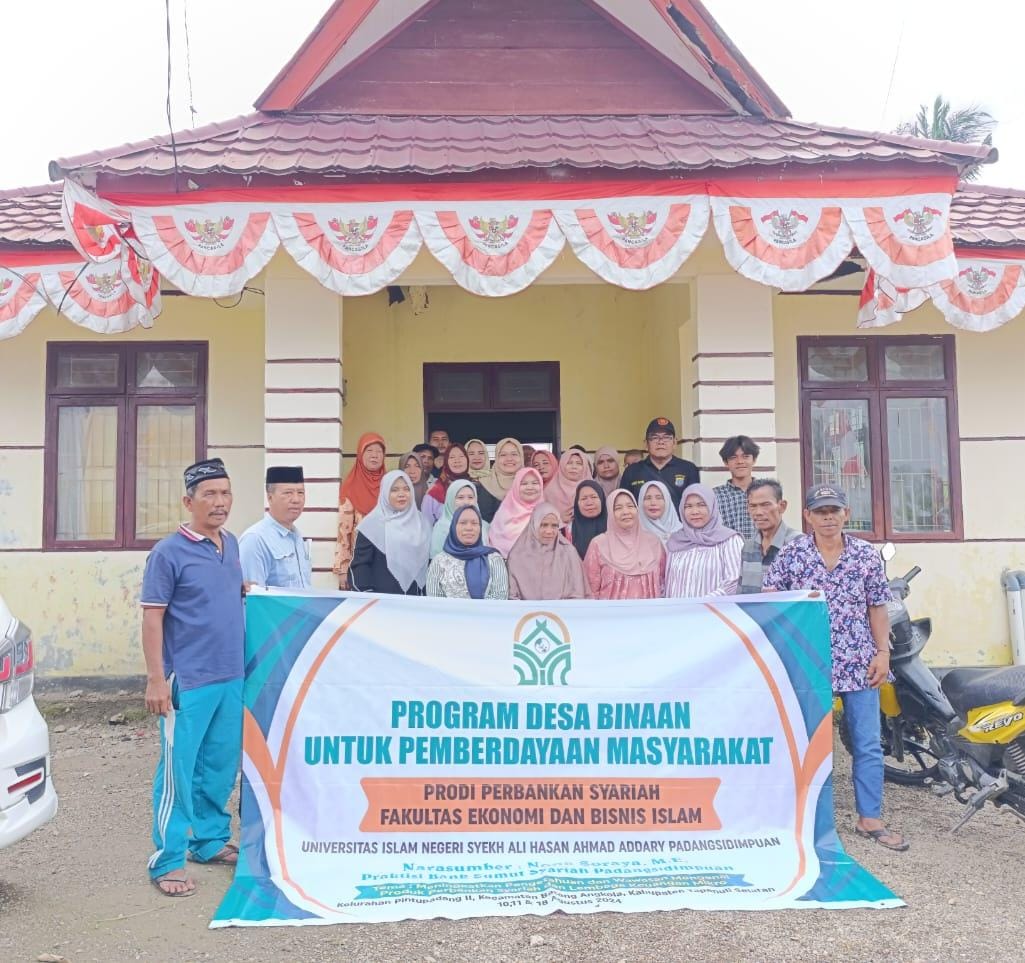 Padangsidimpuan – Program Studi Perbankan Syariah Fakultas Ekonomi dan Bisnis Islam Universitas Islam Negeri (UIN) Syekh Ali Hasan Ahmad Addary Padangsidimpuan baru-baru ini melaksanakan kegiatan Program Desa Binaan yang bertujuan untuk meningkatkan pengetahuan masyarakat tentang keuangan syariah.