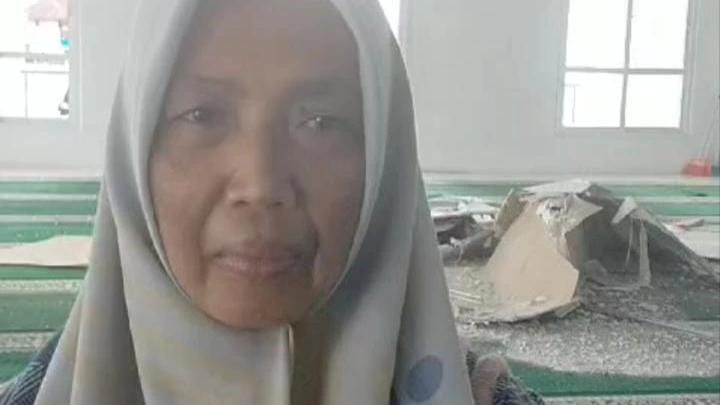 “Kejadiannya sebelum azan ashar, ada 15 menit sebelum azan. Saya tadi duduk di runtuhan ini. Di sana ada dua orang sedang salat,” jelasnya.