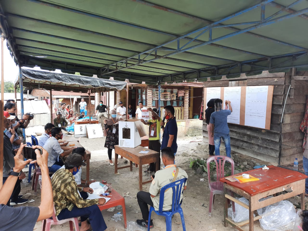 TAPANULI SELATAN-Setelah dilakukan pemungutan suara ulang (PSU), Pasangan calon Bupati/Wakil Bupati Kabupaten Tapanuli Selatan (Tapsel), nomor urut 2, Dolly Pasaribu-Rasyid Dongoran, tetap unggul di TPS 1 Pangaribuan, Kecamatan Sipirok, Minggu (13/12/2020) pagi.