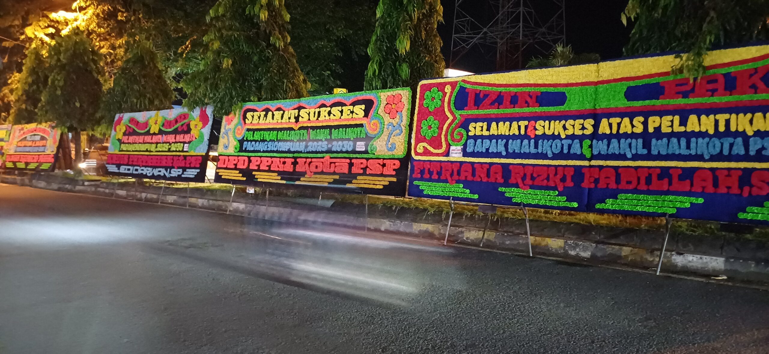 Menurut informasi dari salah seorang pemilik usaha papan bunga, sejak sore, orderan untuk pasangan papan bunga sebagai ucapan atas pelantikan Wali Kota/Wakil Wali Kota Padangsidimpuan.