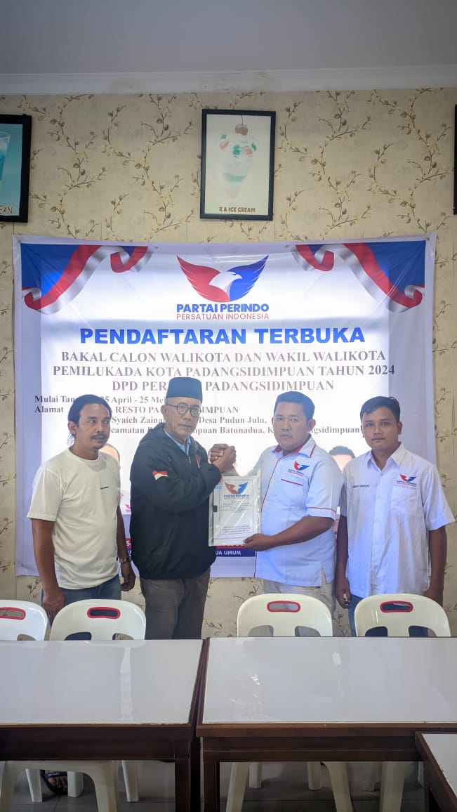 PADANGSIDIMPUAN-Dapat dorongan arus bawah partai, pimpinan DPRD Padangsidimpuan, Rusydi Nasution daftar ke Partai Persatuan Indonesia (Perindo), Rabu (29/5/2024).
