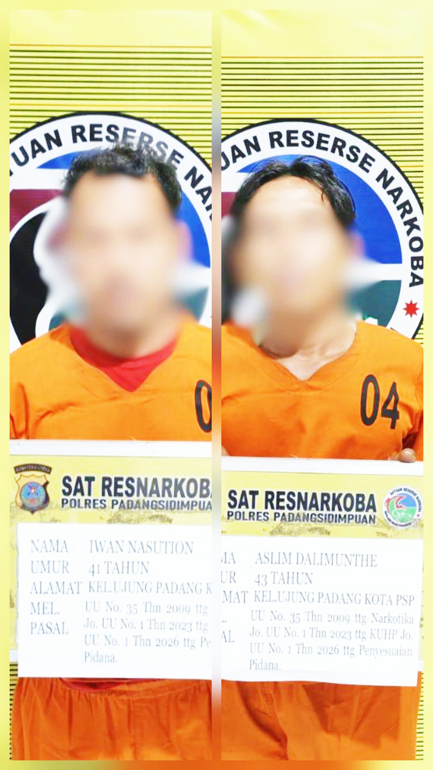 PADANGSIDIMPUAN-Polres Padangsidimpuan, Polda Sumatera Utara, menangkap dua orang kurir narkoba jenis ganja di Jalan Imam Bonjol, Kecamatan Padangsidimpuan Selatan, Kota Padangsidimpuan, Senin (19/1).