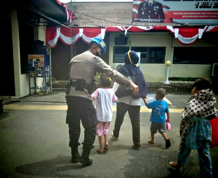 Spontan, Nanang bertanya ke Ana. Selanjutnya, Ana menjawab pertanyaan Nanang sembari mengaku kebingungan mencari kamar mandi untuk anak-anaknya. Mendengar pernyataan ibu tiga anak itu, AKP Nanang lalu merangkul anak-anak tersebut dan membawanya ke dalam Mapolres guna menunjukkan kamar mandi.