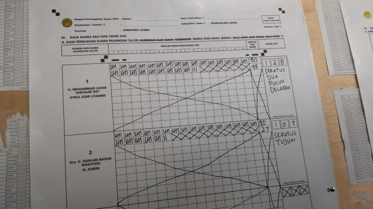 Diberitakan sebelumnya, pasangan calon (Paslon) Bupati/Wakil Bupati, Dahlan Hasan-Aswin Parinduri, unggul di tempat pemungutan suara (TPS) 001 Desa Bandar Panjang Tuo, Kecamatan Muarasipongi, Kabupaten Mandailing Natal.