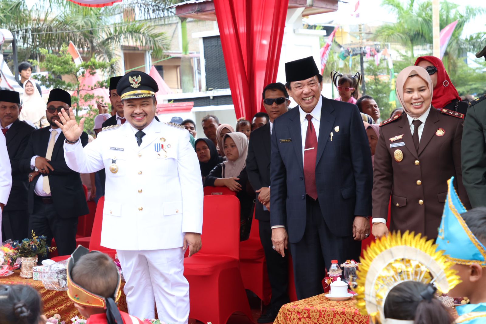 Hadir langsung Bupati Tapsel H. Dolly Pasaribu, bersama Forum Komunikasi Perangkat Daerah (Forkopimda), yang menyambut rombongan karnaval di panggung kehormatan. Sesuai tema HUT RI ke-79 Tahun ini “ Nusantara Baru, Indonesia Maju”