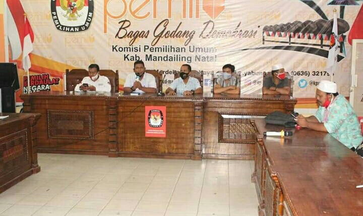 MANDAILING NATAL- Melalui Surat No 1472/PL 02.3 Kpt/1213/KPU-Kab/IX/2020 Komisi Pemilihan Umum (KPU) Kabupaten Mandailing Natal (Madina) menetapkan tiga Pasangan Calon (Paslon) peserta pemilihan Bupati dan Wakil Bupati Madina 2020, Rabu 25/09/2020.
