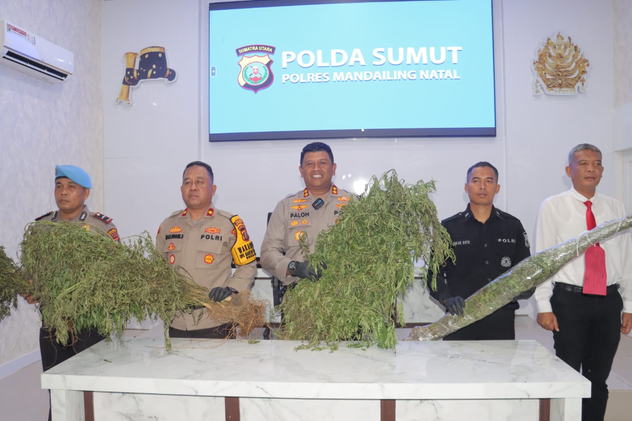 MADINA- Personel Gabungan Polres Mandailing Natal (Madina) berhasil menemukan 1,5 Hektar ladang ganja di Pegunungan Tor Shite, Desa Ranto Natas, Kecamatan Panyabungan Timur, Minggu (12/5/2024).