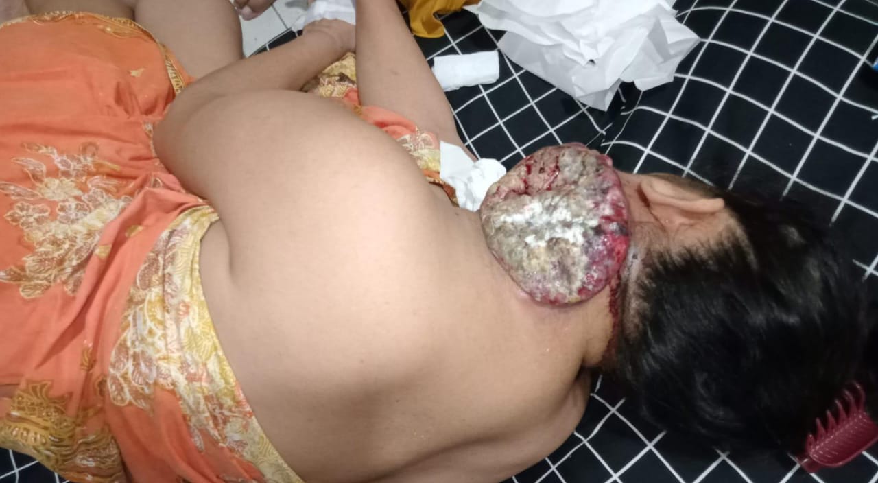 MEDAN- Kondisi Murni Batubara (52), penderita kelenjar getah bening asal Padangsidimpuan yang dirujuk ke Medan dipulangkan pihak RS Adam Malik. Padahal, kondisi pasien tersebut semakin parah. Bagian lehernya membusuk dan berulat, Senin (1/4/2024).