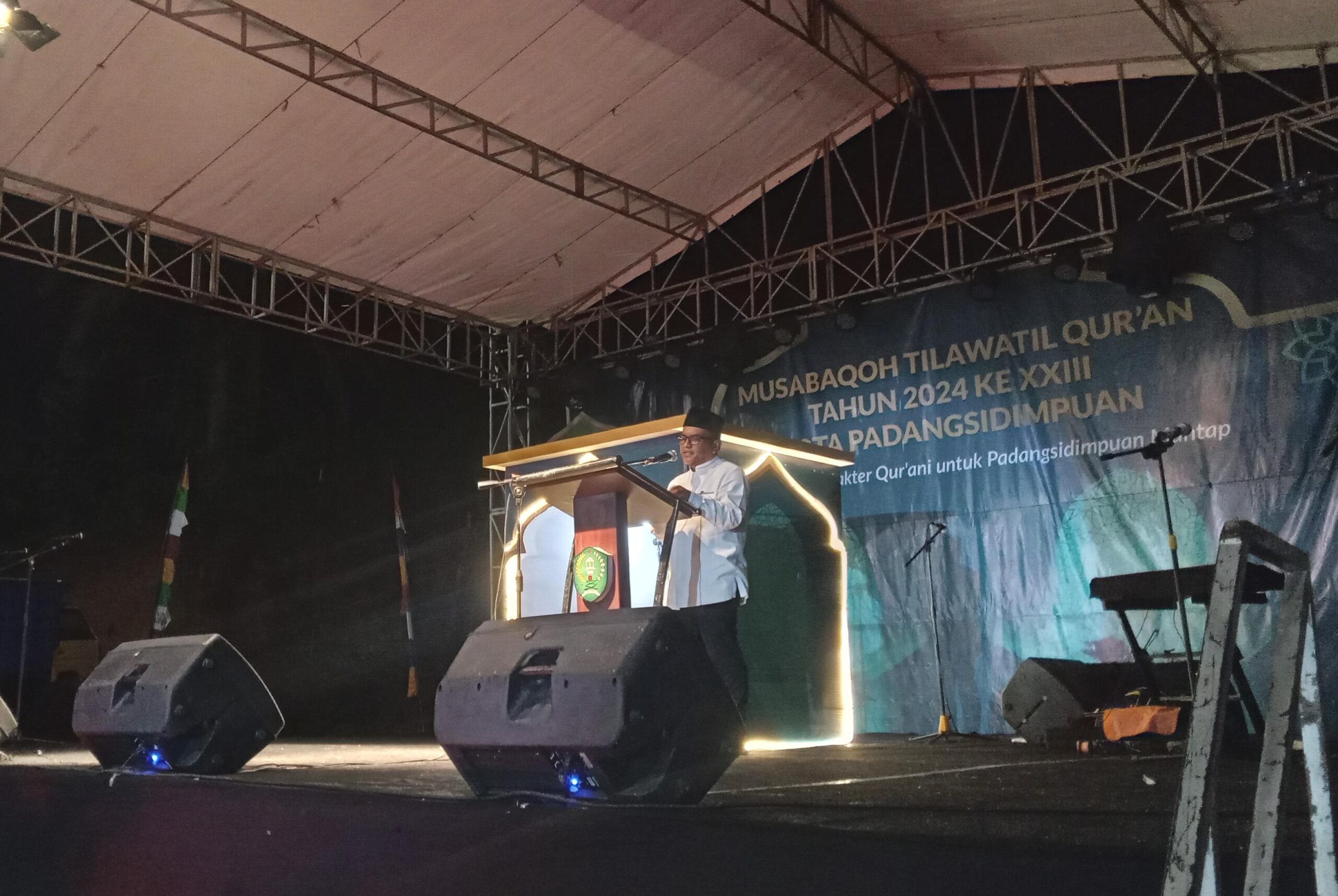 PADANGSIDIMPUAN- Pj Wali Kota Padangsidimpuan Letnan Dalimunthe secara resmi membuka Musabaqah Tilawatil Qur’an (MTQ) Tingkat Kota Padangsidimpuan ke-XXIII yang digelar di Komplek Perumahan Sabungan Indah, Kelurahan Sabungan Jae, Kecamatan Padangsidimpuan Hutaimbaru, Jumat (17/5/2024).
