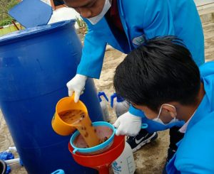 Selanjutnya, bahan tersebut dimasukkan ke dalam tong untuk difermentasikan selama 1 minggu. “Setelah proses dalam 7 hari, maka diperoleh hasilnya pupuk cair organik. Sedangkan ampasnya digabung dengan kotoran hewan dan akan menghasilkan pupuk padat,”ujarnya kepada wartawan.