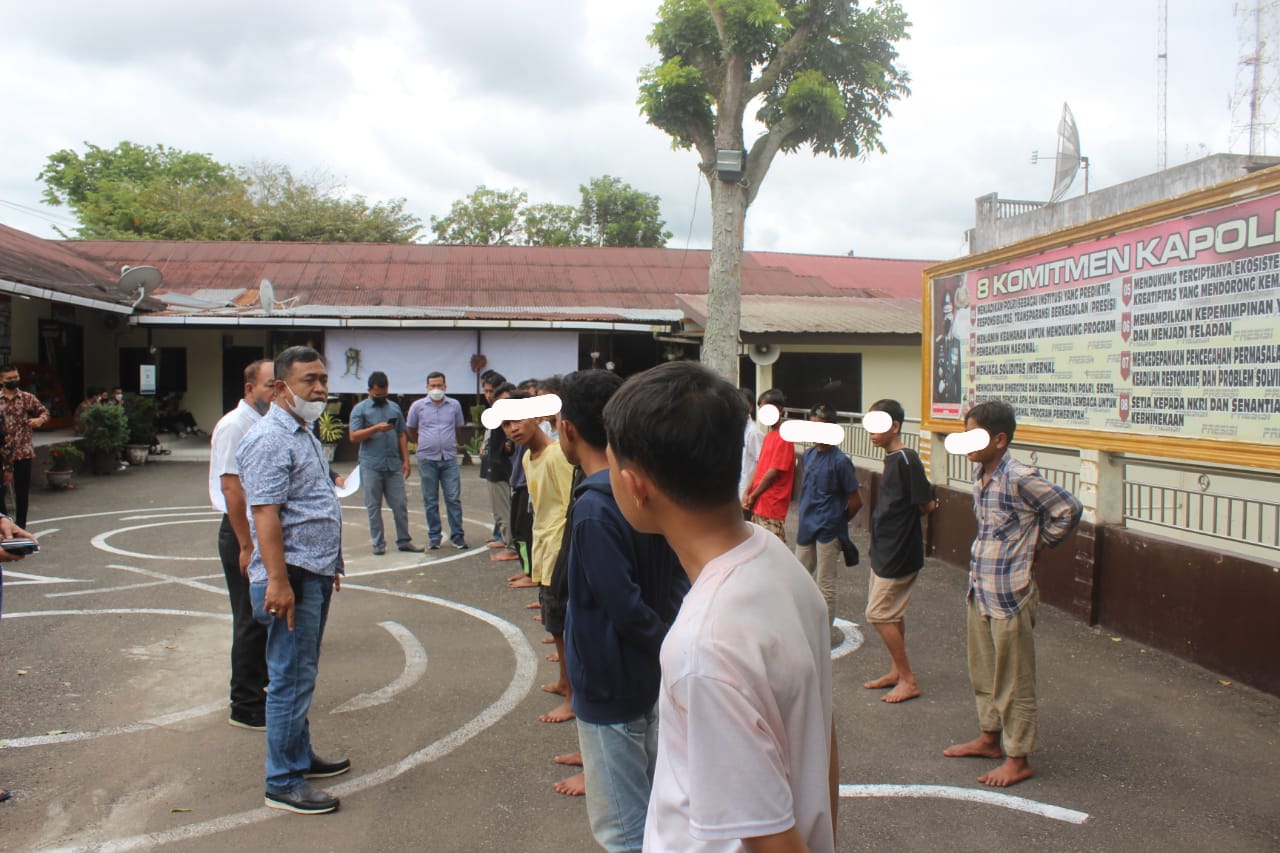 Mereka yang diamankan adalah, H 13) warga Kelurahan Sidakkal, Kecamatan Padangsidimpuan Selatan, ES (14) warga Jalan Mawar, Kelurahan Ujung Padang, Kecamatan Padangsidimpuan, Selatan, BAJ (14) warga Sidakkal, HGH (17) Kelurahan Sidakkal, JT (15) Kelurahan Sidakkal, NH (18) Kelurahan Sidakkal, IL (15) warga Jalan Nusa Indah, Kecamatan Padangsidimpuan Selatan, AN (16) Desa Salambue, Kecamatan Padangsidimpuan Tenggara.