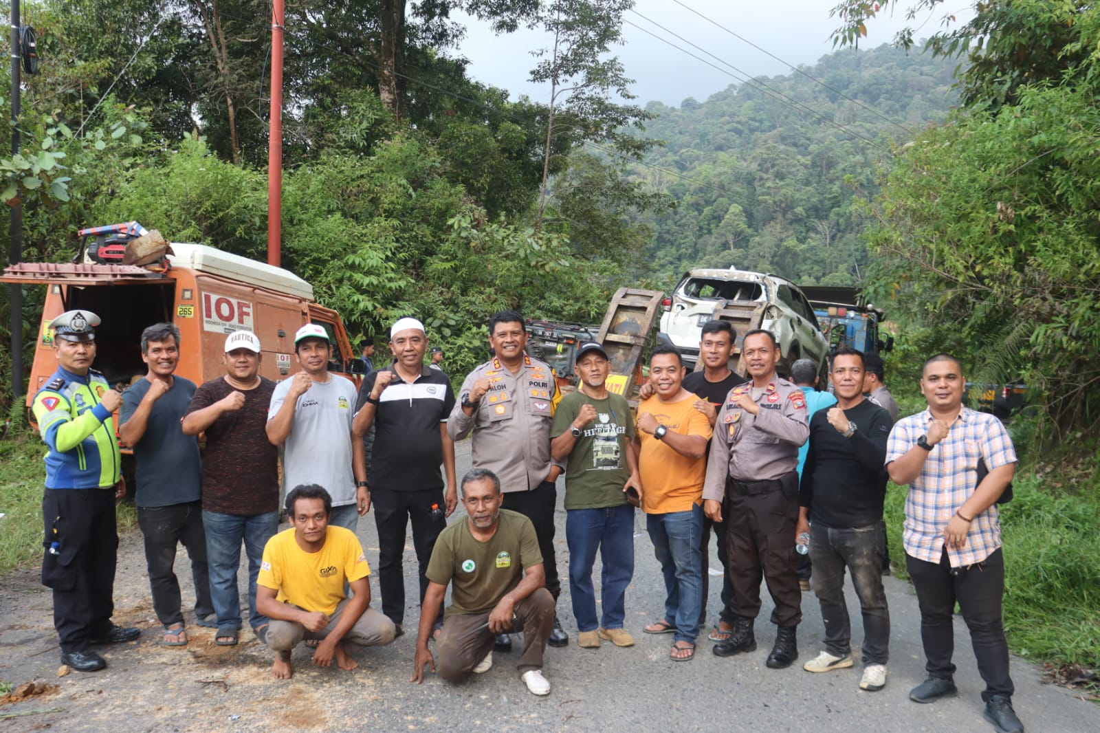 Mendapat kabar itu, Kapolres Mandailing Natal AKBP Arie Sofandi Paloh langsung menuju TKP dan juga dibantu tim Indonesia Off-road Federation (IOF) Mandailing Natal untuk melakukan evakuasi mobil yang masuk ke jurang.