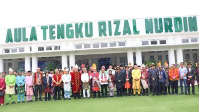 Sebelum membuka Musrenbang RKPD 2025, Pj. Gubernur Sumut Hassanudin mengenakan baju adat Toba dan menaiki becak bersama para Bupati/Wali Kota se-Sumut bergerak dari rumah dinas Gubsu menuju lokasi Musrenbang di Ball Room Santika Premiere Dyandra Hotel & Convention.