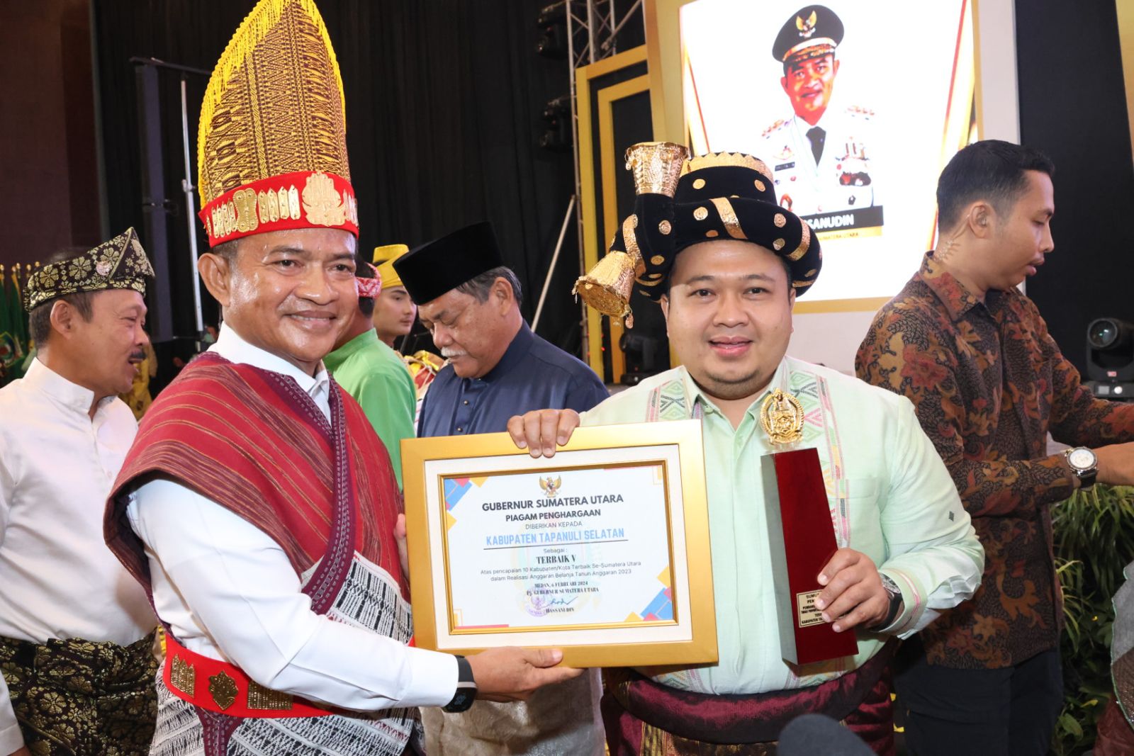 TAPANULI SELATAN – Pemerintah Kabupaten (Pemkab) Tapanuli Selatan (Tapsel) menerima dua penghargaan dari Pj. Gubernur Sumatera Utara (Gubsu), Hassanudin.