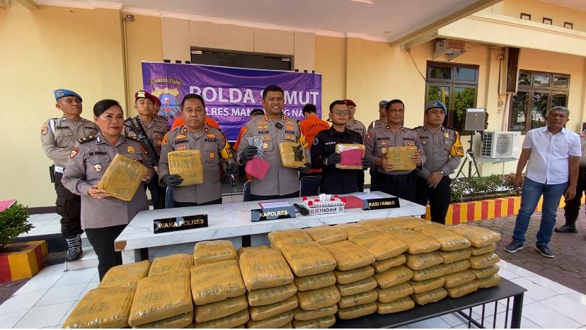 MANDAILING NATAL- Polres Mandailing Natal Lagi- lagi Menangkap tiga orang yang diduga berprofesi sebagai kurir ganja, dan mengamankan 110.000 gram barang bukti ganja kering siap edar.