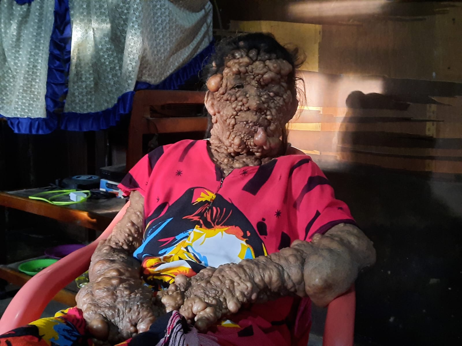 Nelliati menderita penyakit langka ini sudah cukup lama. Sejak kelas 2 Sekolah Dasar (SD), benjolan itu mulai tumbuh dan sejak kelas 2 Aliyah (SMA) di sekujur tubuhnya terus tumbuh benjolan baru. Parahnya, penyakit itu hingga membutakan mata sebelah kirinya. Benjolan yang tumbuh di telapak kaki kirinya sangat sakit saat hendak berjalan.