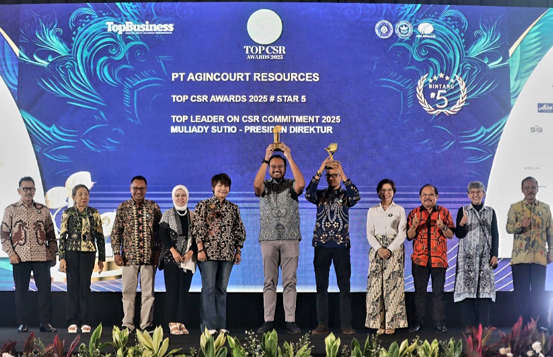 JAKARTA– Presiden Direktur PT Agincourt Resources Muliady Sutio raih penghargaan TOP Leader on CSR Commitment di ajang bergengsi TOP CSR Awards 2025, di Jakarta.
