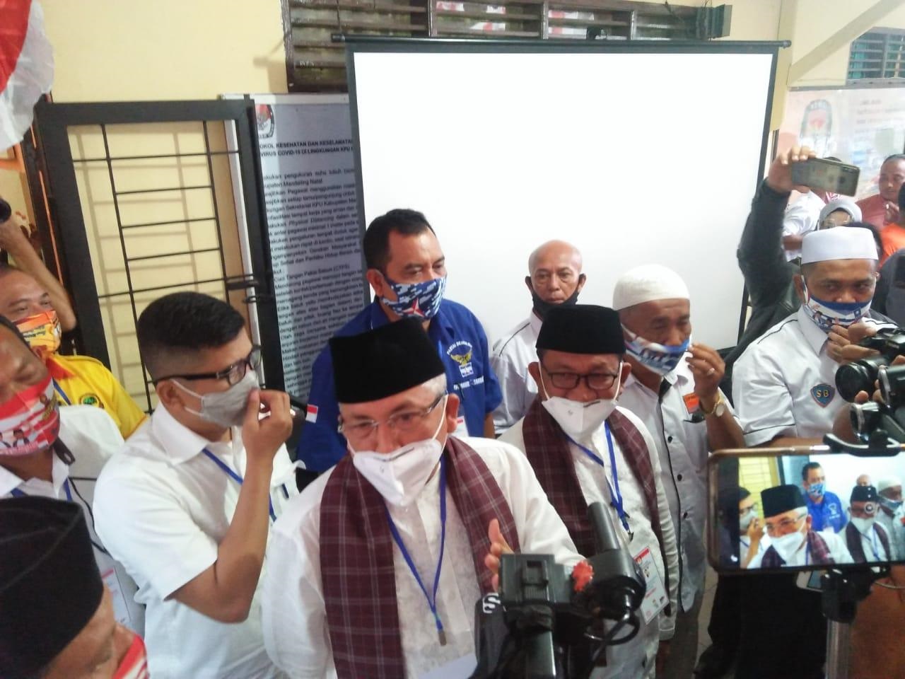 Paslon Sofwat-Beir tiba di Kantor KPU sekitar jam 11.00 Wib didampingin para Partai Politik (Parpol) pengusung, pendukung, dan juga simpatisan.