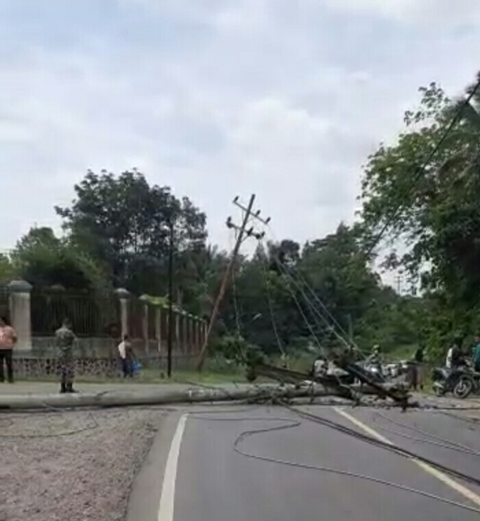 TAPANULI SELATAN -Tiang milik PT PLN di Pargarutan, Kecamatan Angkola Selatan, Kabupaten Tapanuli Selatan (Tapsel), Sumatera Utara (Sumut), roboh, Sabtu (22/1/2022).