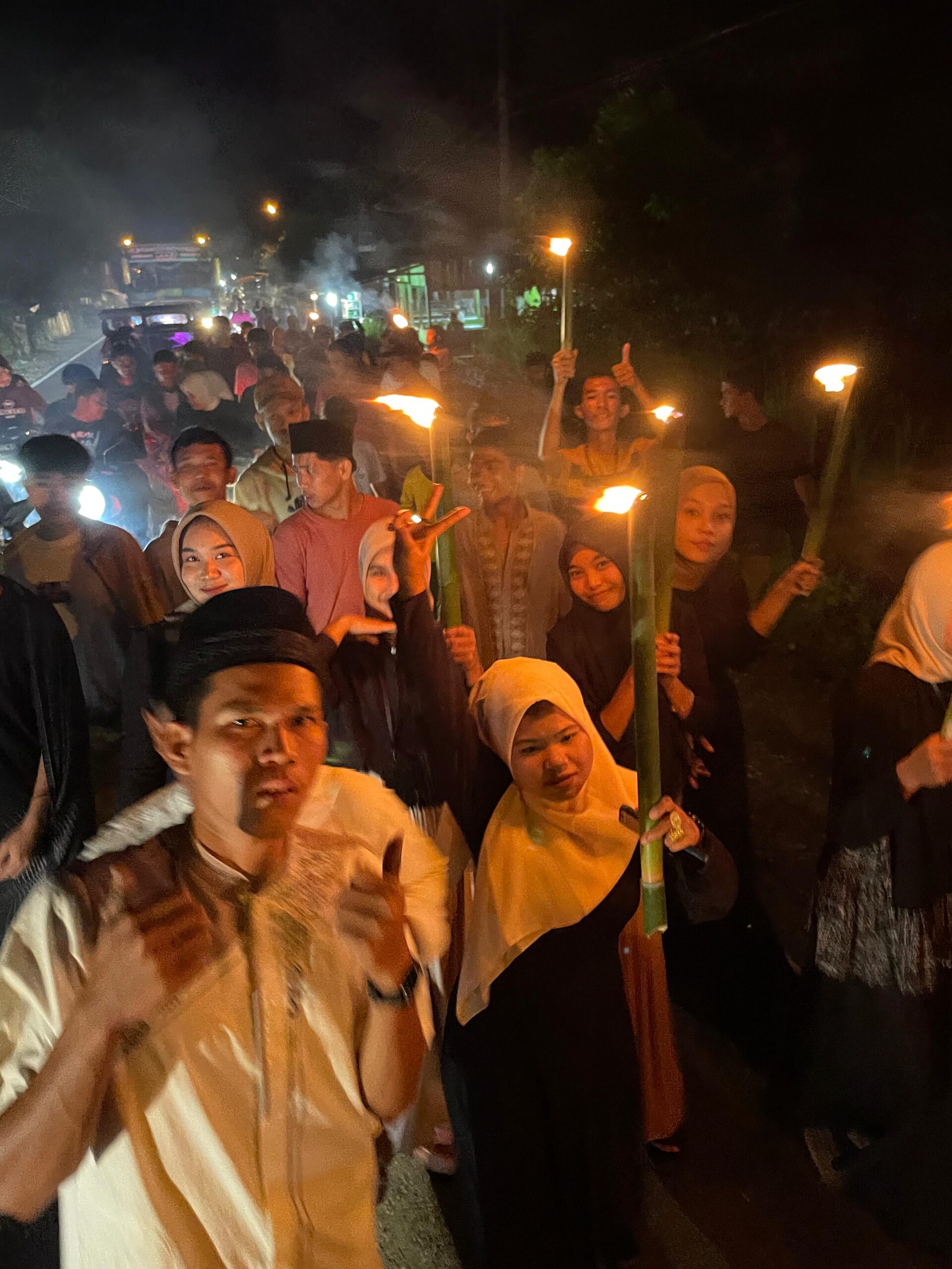 TAPANULI SELATAN-Rayakan 1 Muharram 1446 H, Kepala Desa bersama seribuan warga Desa Sipakko, Kecamatan Angkola Muara Tais, Kabupaten Tapanuli Selatan, Sumatera Utara, gelar pawai obor.