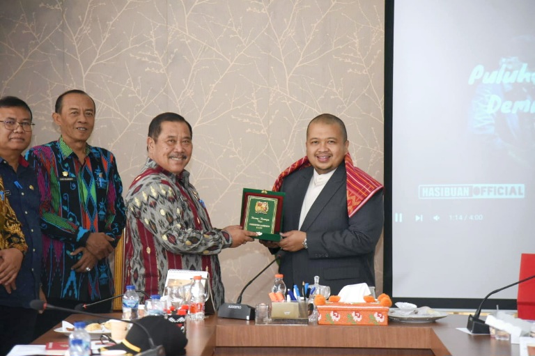 Di hadapan rombongan, Bupati Dolly Pasaribu mengapresiasi kunjungan tersebut dan menekankan pentingnya saling berbagi pengalaman.