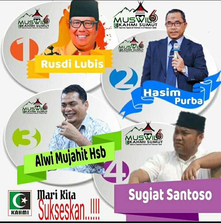Ke-empat nama tersebut adalah, Rusdi Lubis, Hasim Purba, Alwi Mujahib Hasibuan dan Sugiat Santoso.”Ke-empat nama tersebut semuanya calon kuat,”ujar Panitia Daerah Muswil ke-6 KAHMI Sumut, Toto Malando Harahap kepada LENSAKINI ketika ditemui.