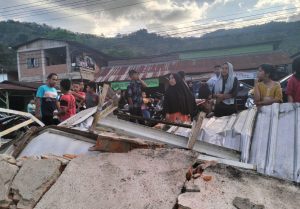 PADANGSIDIMPUAN- Salah satu bangunan pasar modern mengalami ambruk di Jalan HT Rizal Nurdin, Kelurahan Sihitang, Kecamatan Padangsidimpuan Tenggara, Kota Padangsidimpuan, hingga menimpa 3 unit kendaraan milik warga yang berbelanja di lokasi.