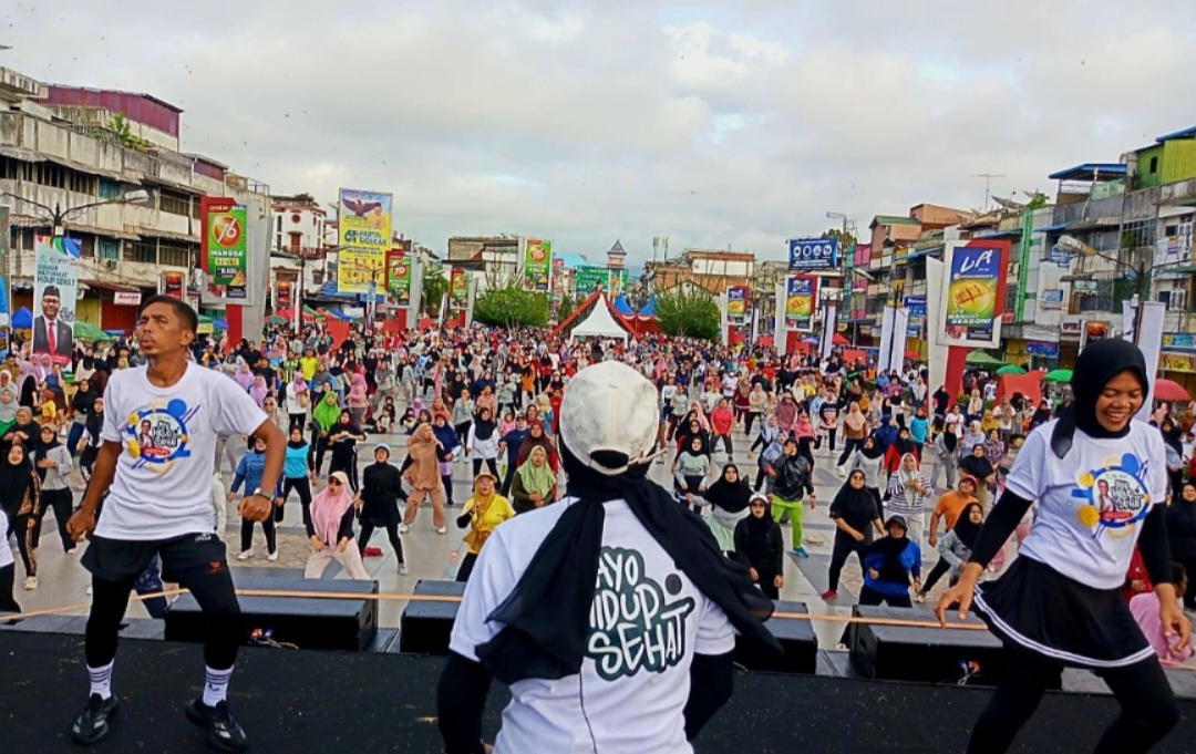 PADANGSIDIMPUAN (LENSAKINI)-Belasan ribu warga di Padangsidimpuan , Sumatera Utara (Sumut), ikuti senam sehat Germas bersama anggota DPR RI, Komisi IX, Sihar Sitorus, Sabtu (18/10).