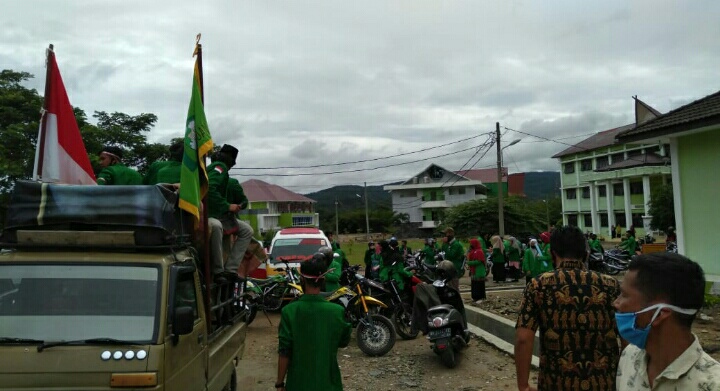 PADANGSIDIMPUAN- Badan Eksekutif Mahasiswa (BEM) IAIN Padangsidimpuan bersiap menuju Halaman Bolak Padangsidimpuan, sebagai titik kumpul.