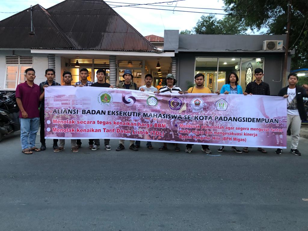 Menurut rencana, pukul 13.00 WIB, Aliansi BEM se-Kota Padangsidimpuan yang tergabung dari BEM Aufa Royhan, BEM UIN Syekh Ali Hasan Ahmad Addary, BEM Universitas Graha Nusantara, BEM Institut Perguruan Tinggi Tapanuli Selatan, BEM Darmais dan BEM Universitas Muhammadiyah Tapanuli Selatan akan menggelar aksi unjukrasa penolakan kenaikan BBM.
