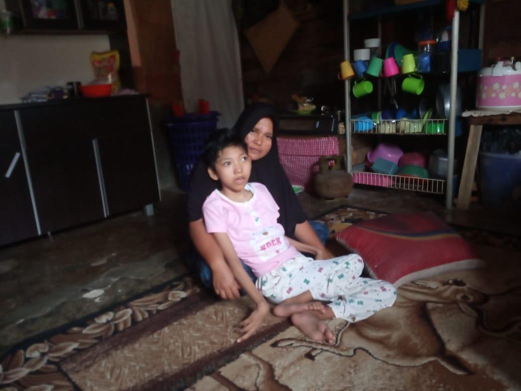 “Ketika masih hidup, suami saya bekerja penarik becak bermotor,”ujarnya. Untuk kebutuhan susu, pakaian dalam, dan obat salap, membutuhkan uang sebanyak Rp25 ribu setiap hari.
