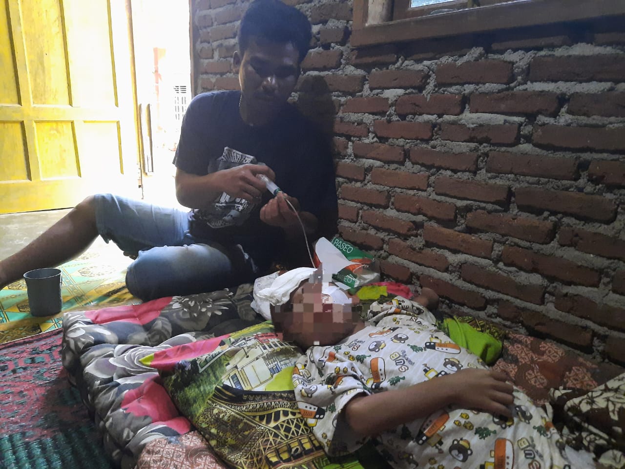 “Kebutuhan nutrisi anak saya harus dipenuhi, kami telah terbiasa memberi makan dan juga obat melalui selang NGT yang masih terpasang di tubuh Azis. Sesekali ayahnya menegur Azis namun hanya bisa direspon dengan mata sedikit terbuka,” ujar Ibunya.