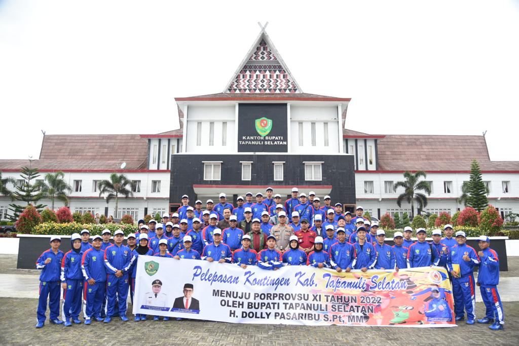 TAPSEL- Bupati Tapanuli Selatan (Tapsel) Dolly P Pasaribu melepas sebanyak 107 orang kontingen Tapsel ke Pekan Olah Raga Provinsi Sumatera Utara (Sumut) Ke-11 (29 Oktober-5 Nopember) Tahun 2022, di Medan.