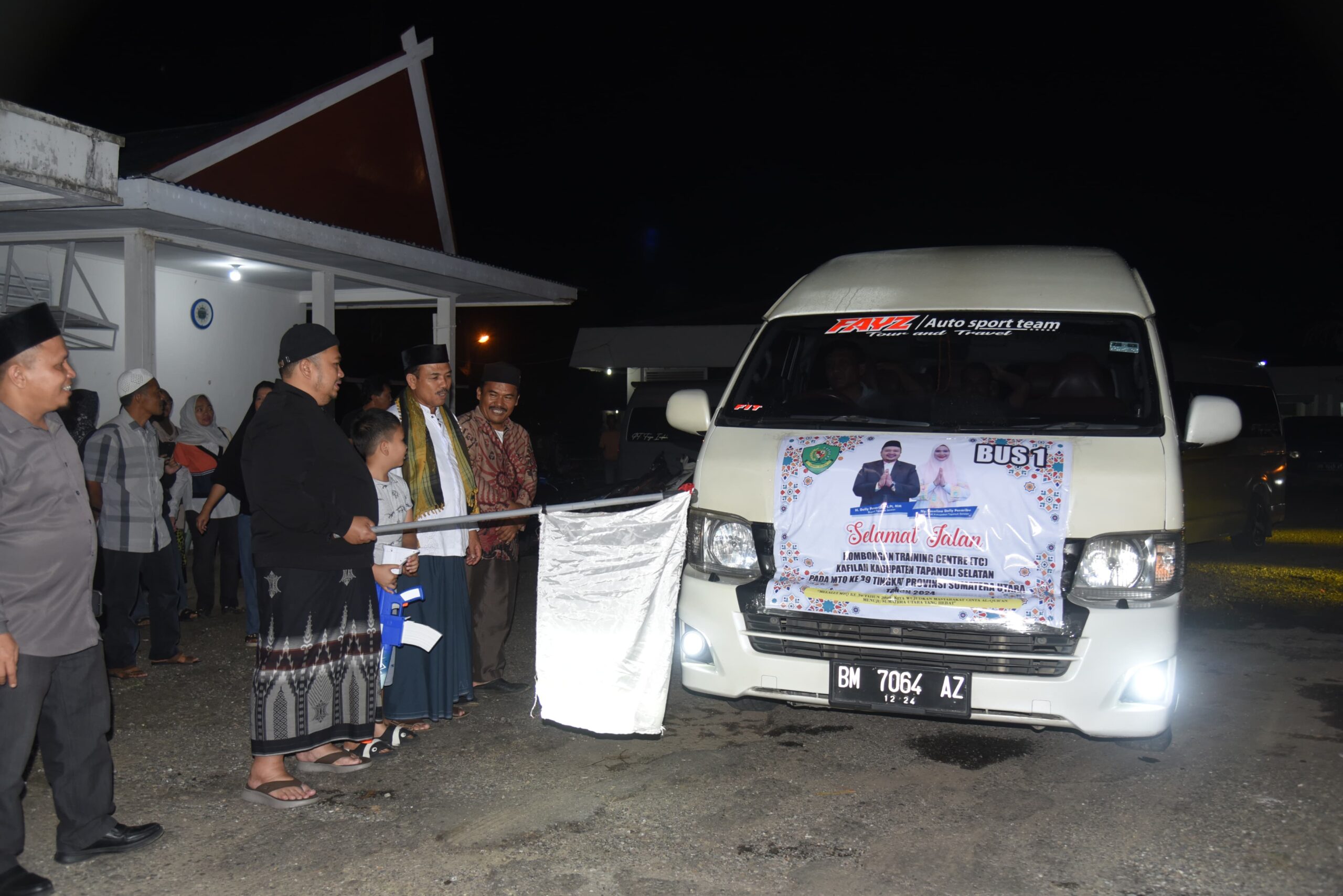 50 peserta utusan training center MTQ dari Kabupaten Tapsel yang berangkat ke Medan di lepas Bupati di eks. Kantor Bupati Tapsel, Jalan Kenanga No. 74, Kota Padangsidimpuan, Minggu (12/5) malam.