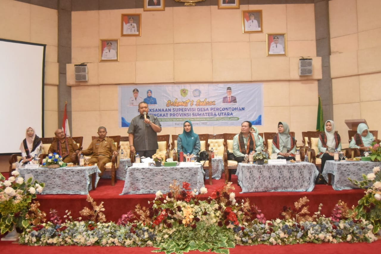 TAPSEL- Bupati Tapanuli Selatan (Tapsel) H Dolly Pasaribu menerima kunjungan Tim Supervisi desa binaan Provinsi Sumut (Provsu) dalam rangka penilaian desa percontohan di Gedung Serba Guna Sarasi, Komplek Perkantoran Pemkab Tapsel, Jalan Prof Lafran Pane, Kecamatan Sipirok, Selasa (24/1/2023).