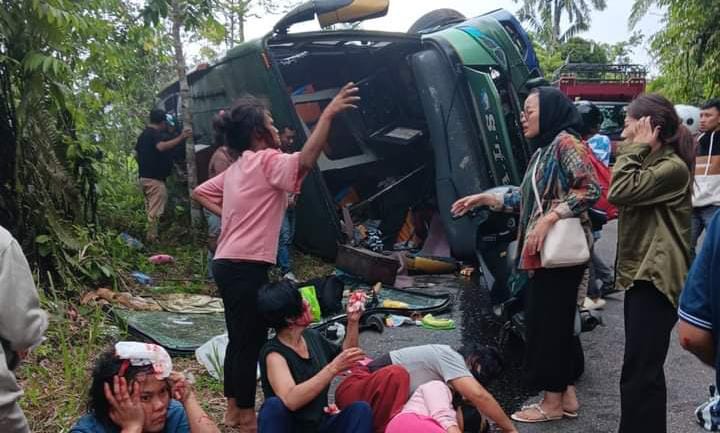 Laporan yang diterima, satu orang dikabarkan tewas dan 46 orang lainnya mengalami luka-luka. Bus bernomor polisi BK 7371 UD itu diketahui dikemudikan oleh Kevin Harahap.