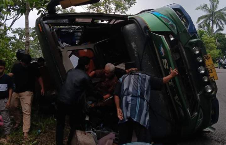 “Sopir membanting stir ke kiri sehingga membuat keseimbangan mobil bus hilang dan bus merebah ke kanan,” kata Agus dikutip dari media online.