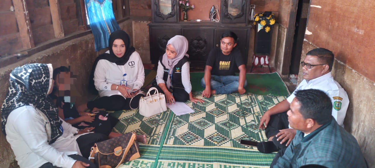 MADINA- Camat Muarasipongi bersama Pegawai Dinas Sosial dan Dinas Pemberdayaan Perempuan dan Perlindungan Anak Kabupaten Mandailing Natal, Sumatera Utara mendatangi kediaman bocah korban pencabulan di Kecamatan Muarasipongi, Rabu (9/8/2023).