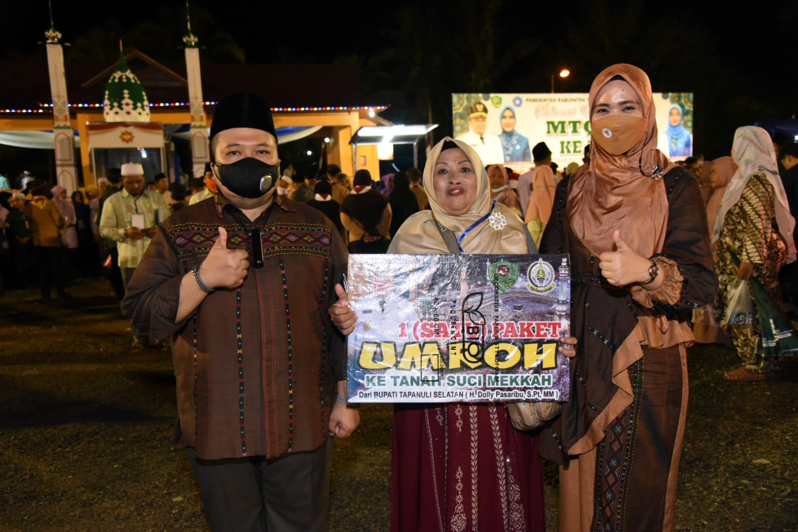 TAPANULI SELATAN-Latifah Pulungan (56) langsung menunduk sembari bersyukur ketika namanya dipanggil menjadi salah satu yang mendapat hadiah umroh pada MTQN ke-54 Kabupaten Tapanuli Selatan (Tapsel), Sumatera Utara (Sumut) di Kelurahan Sangkunur, Kecamatan Angkola Sangkunur.