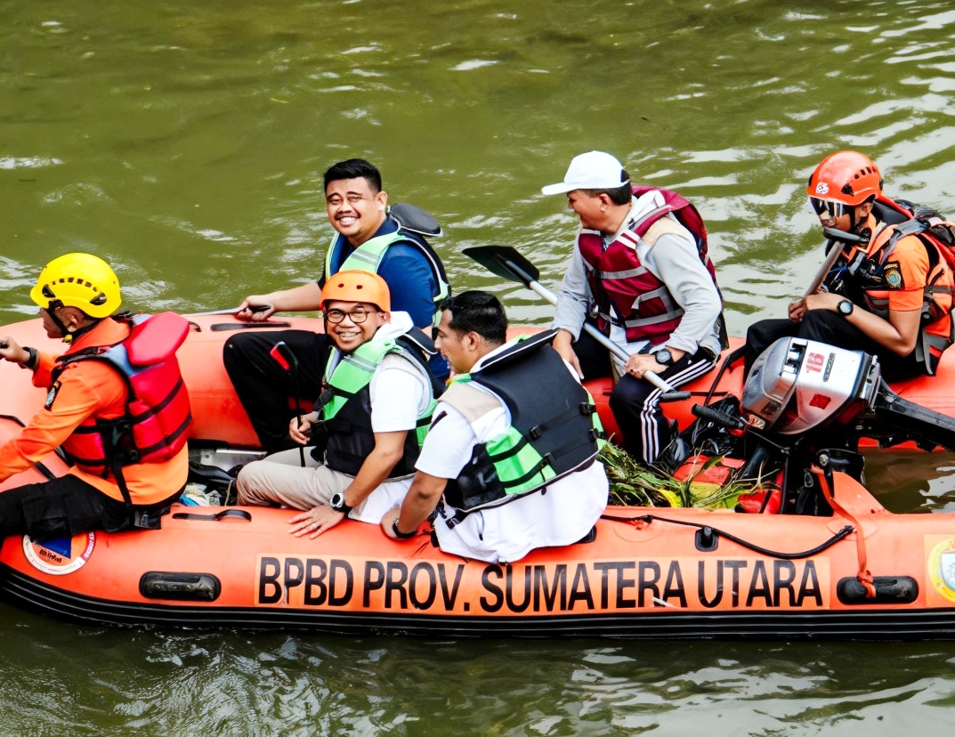 Dalam aksi itu, para peserta menyusuri aliran Sungai Deli menggunakan perahu karet milik BNPB dan BPBD Sumut serta Kota Medan, sambil memungut sampah yang mengendap di aliran sungai dengan alat pengapit.
