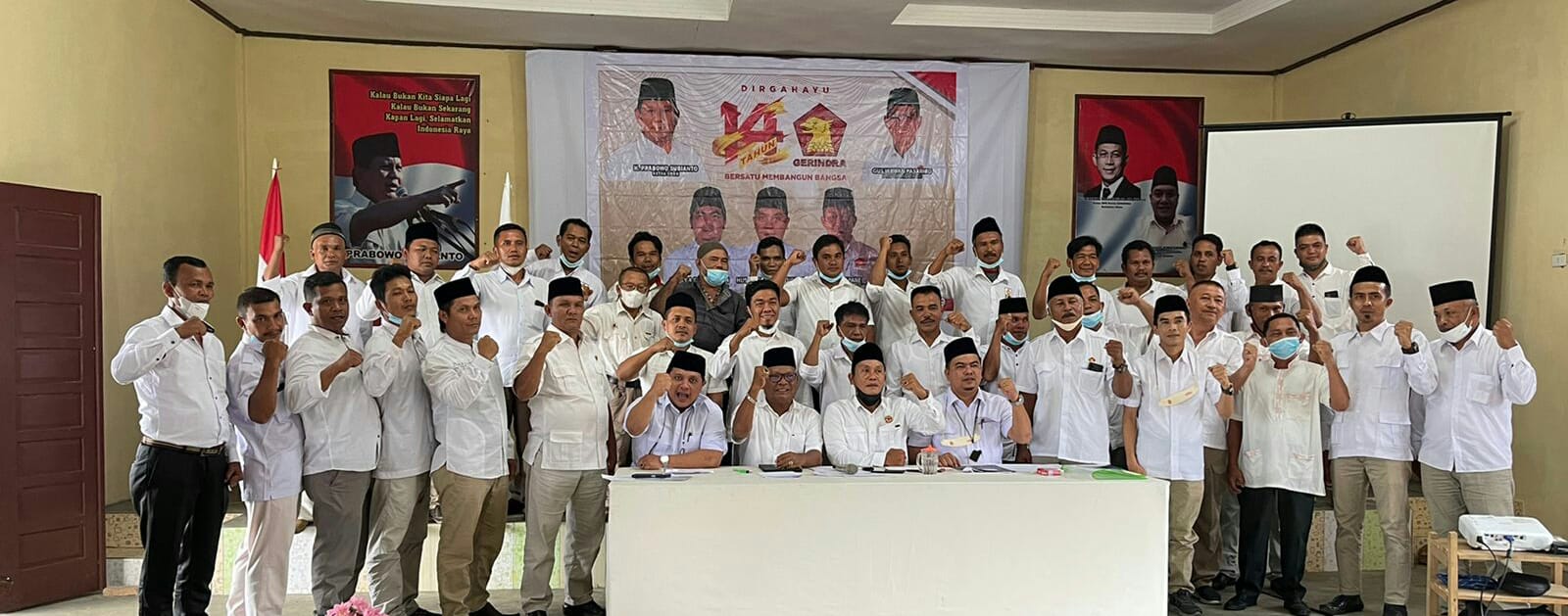 Deklarasi tersebut diutarakan oleh anggota Fraksi dan pengurus partai pada saat perayaan HUT Partai Gerindra ke-14 di Sipirok, Kabupaten Tapsel.”Seluruh kader dan pengurus mari rapatkan barisan untuk memenangkan Prabowo Subianto menjadi Presiden RI,”ujar Ketua DPC Partai Gerindra Husin Sogot Simatupang.