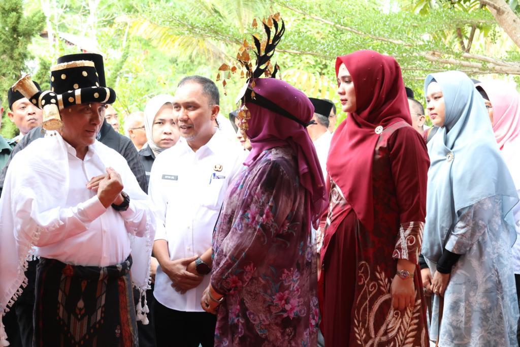 TAPSEL- Bupati Tapanuli Selatan (Tapsel) Dolly Pasaribu yang diwakili Sekretaris Daerah (Sekda) Sofyan Adil mendampingi Gubernur Sumatera Utara (Gubsu) Edy Rahmayadi bersama Ketua TP PKK Sumut Nawal Lubis saat melakukan ziarah ke makam Namora Pande Bosi di Kecamatan Batang Angkola, Rabu (2/8/2023).