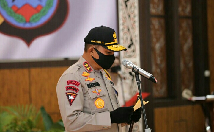 “Dengan latar belakang yang sama sebagai Dirlantas Polda Banten (Kombes Pol Wibowo), saudara diharapkan dapat menaikkan kinerja Ditlantas Polda Sumut,” ujar Kapolda Sumut Irjen Pol Martuani Sormin ketika memimpin upacara serah terima jabatan (sertijab) Irwasda dan Dirlantas di Aula Tribrata Mapolda Sumut, Jalan SM Raja, Medan, Jum’at (19/6/2020).